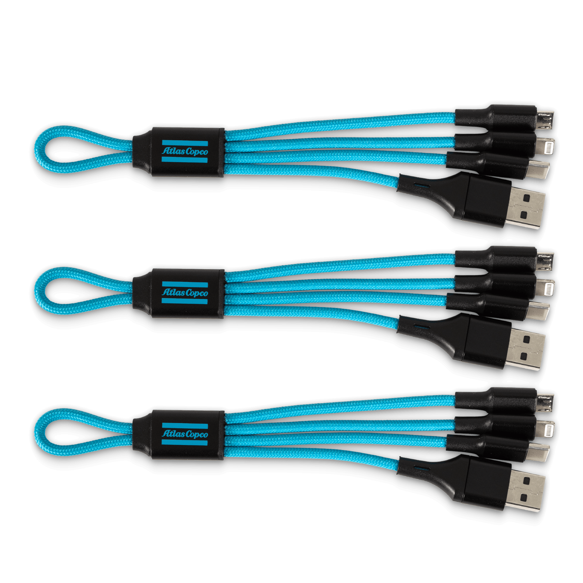 Multi-connector cable designed with nylon braided cables. Durable and colorful. Compatible with any device with Lightning 8 pin, USB Type-C or Micro USB charging connector.
