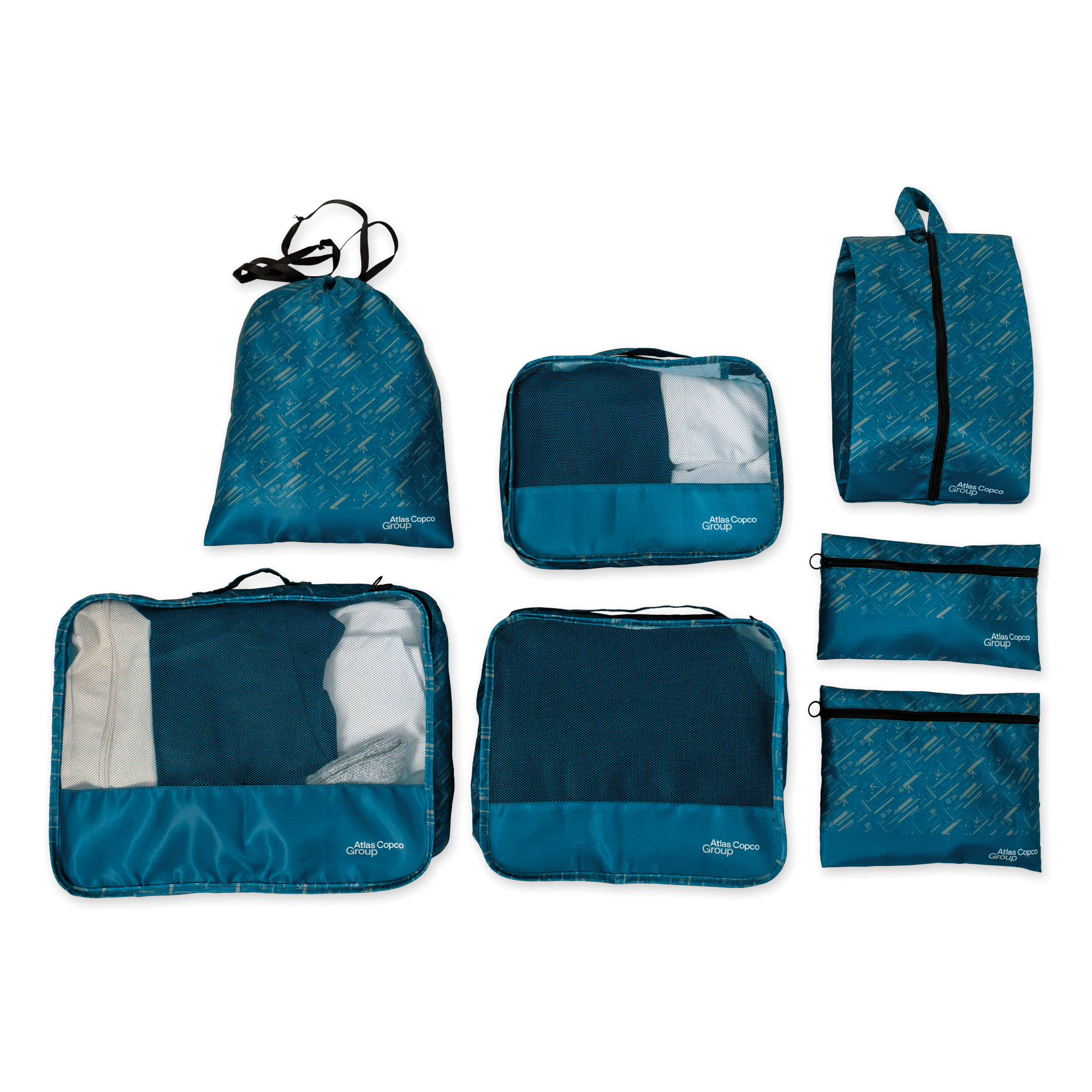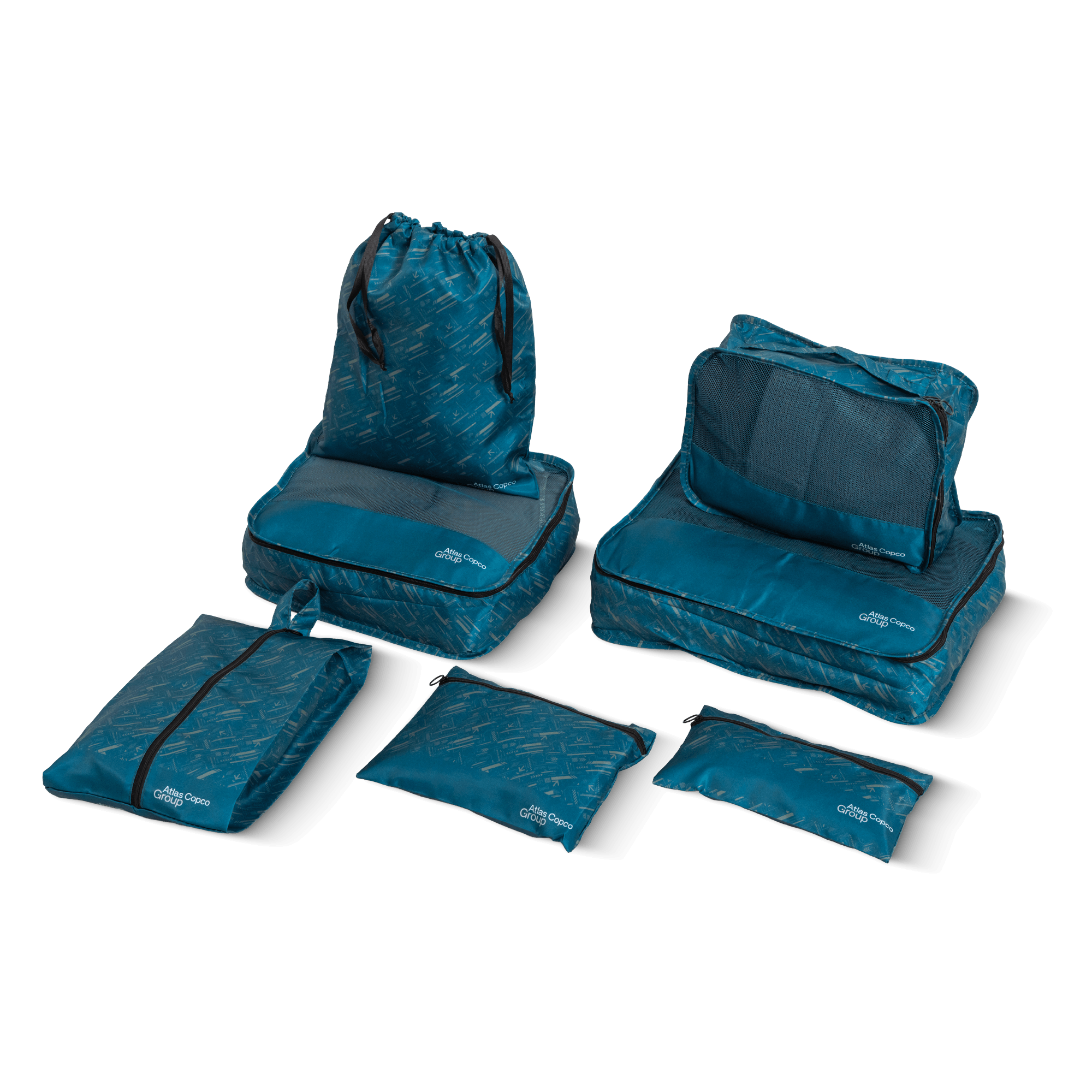 • Teal color backpack with Atlas Copco Group logo Teal color backpack with Atlas Copco Group logo